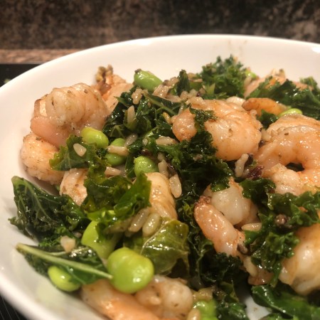 Edamame Kale Rice with Grilled Shrimp