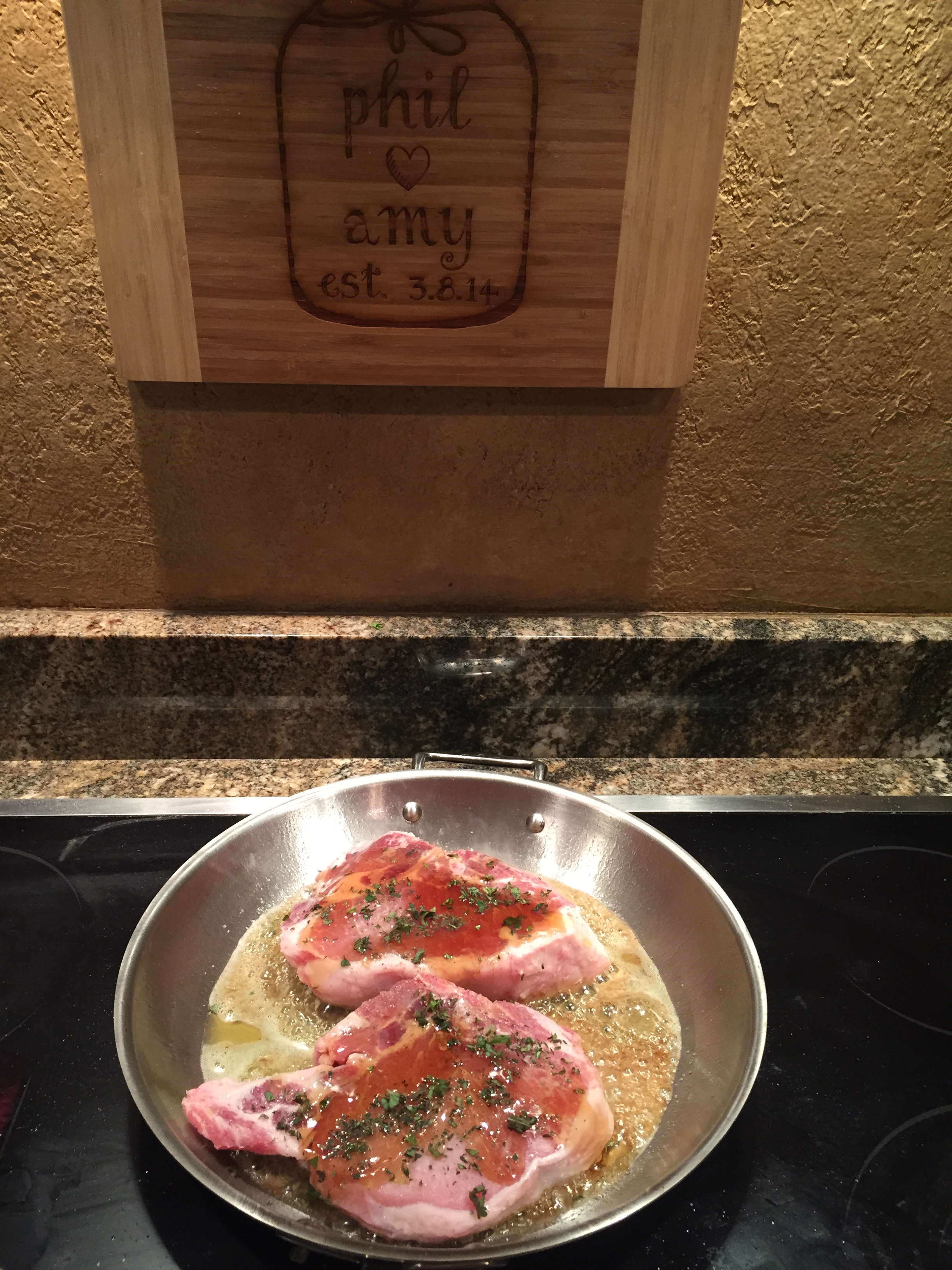 I seared that side for a minute and half and put maple syrup on top of each again and broiled the chop for about three to four minutes. Then flipped again and broiled for same amount of time. Allow the chops to rest before serving. Feel free to adjust the herbs and sweetness to your desired level.