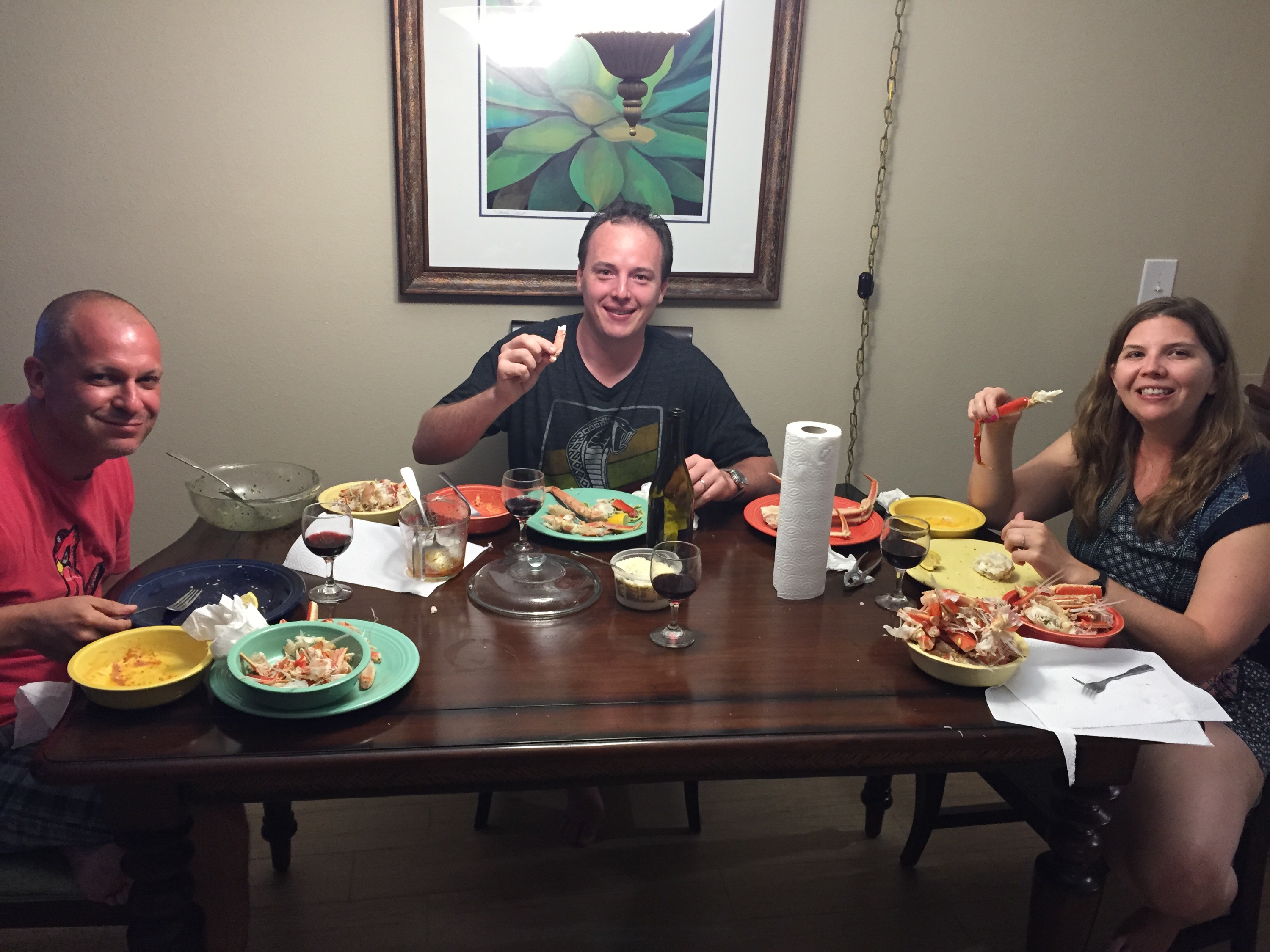 After fishing all day, we sought seafood but came up empty handed after fishing the whole day. Thankfully, Publix had crab legs on sale. For a quiet night in, we started the night with wine and cheese.