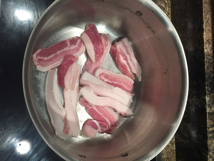 step one: Cook bacon to render oil (I cook mine in the oven on a cookie sheet at
