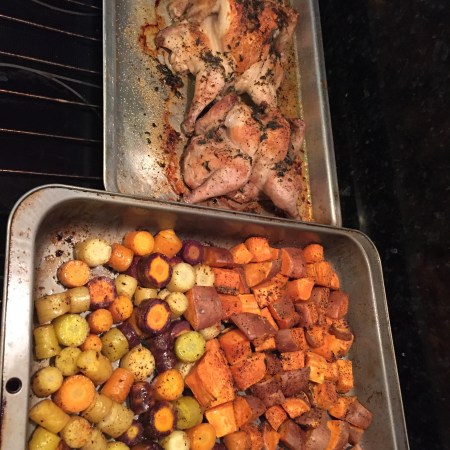 September 26, 2016September 26, 2016amysapron Poussin with roasted sweet potatoes and rainbow carrots